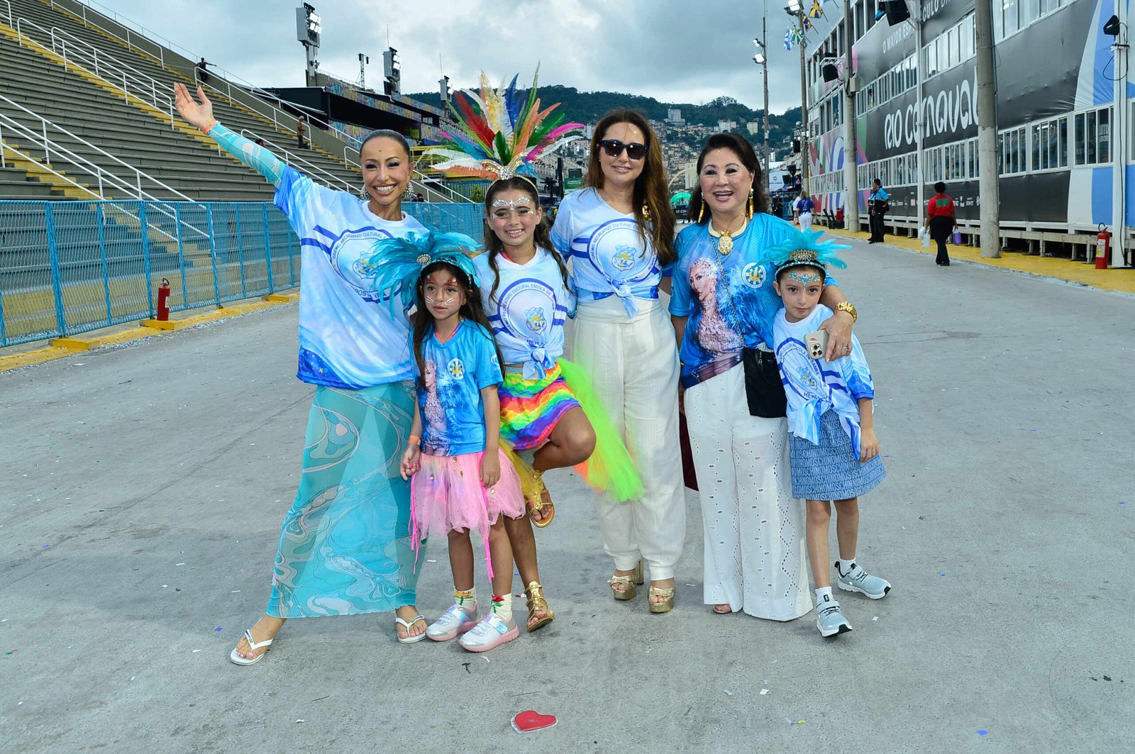 O desfile também contou com a presença de outros familiares. A irmã da apresentadora, Karina Sato, levou a filha, Manuela, enquanto a avó, Kika Sato, acompanhou orgulhosa a estreia das netas na passarela do samba.